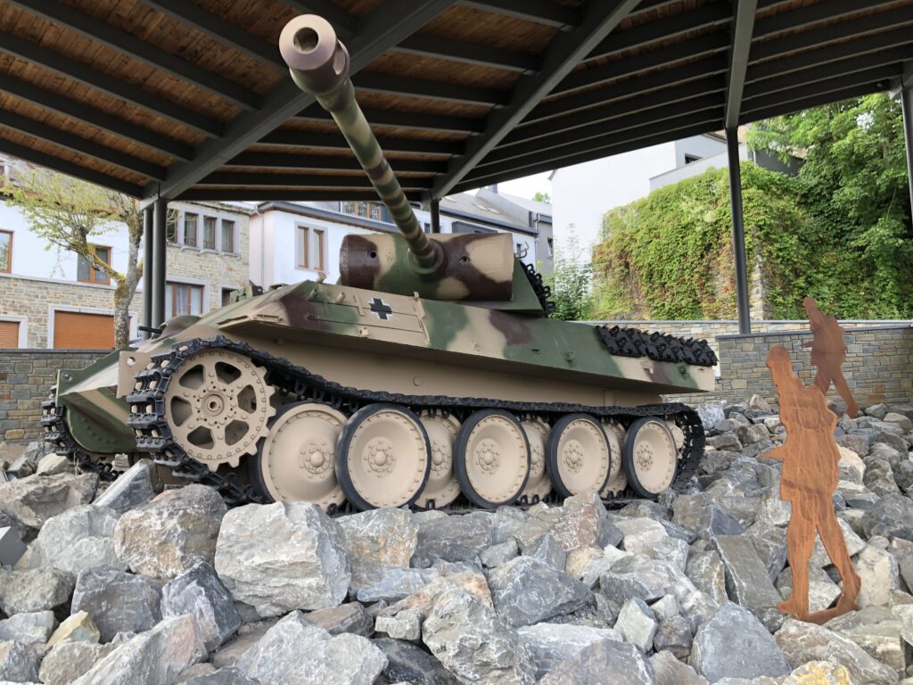 Zu Houffalize ass, ronderëm deen eréischt kierzlech restauréierten däitsche Panther, deen am Januar 1945, an de lëschten Deeg vun der Ardenneschluecht an der Lokalitéit selwer, op enger Bréck un d’Rutsche koum an do an de Floss Ourthe gefall war, e klenge Musée entstan.