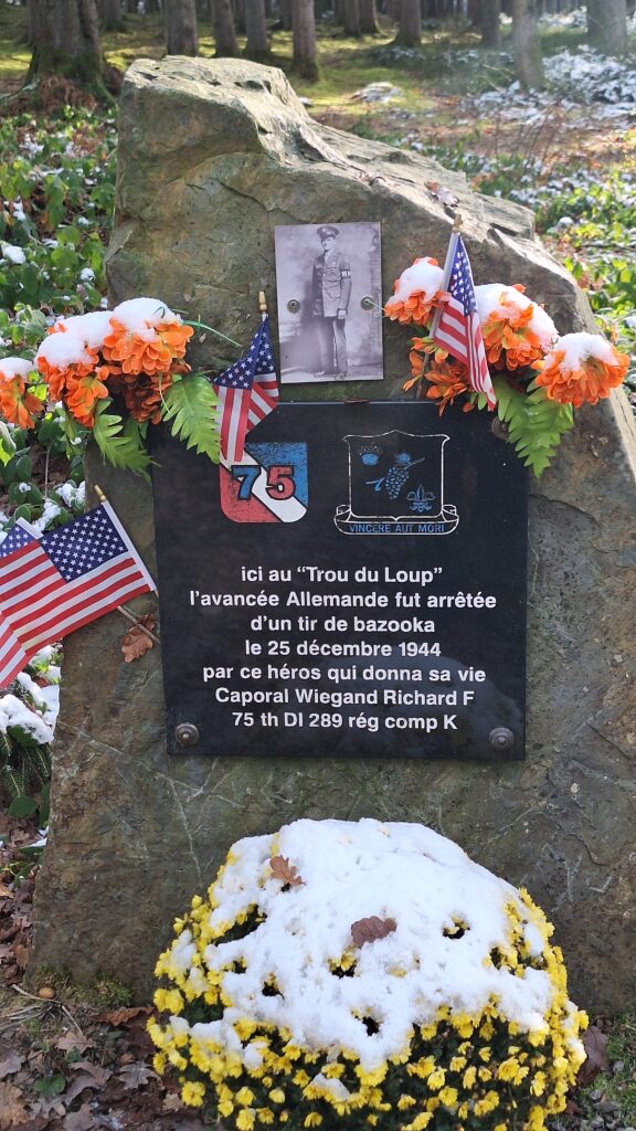 No der Visite vun dësem Musée si mir, ënner der Féierung vun onsem Guide David Schweitzer op de Lieu-ditTrou du loup, gefuer, wou de Virstouss vun den Däitschen an der Bataille des Ardennes ofgebremst ginn ass. Den US-Kaperol Richard F. WIEGAND konnt op der Plaz, de 25. Dezember 1944, direkt den éischte vun engem Grupp vun 8 Panthere mat enger Bazooka ofschéissen.
